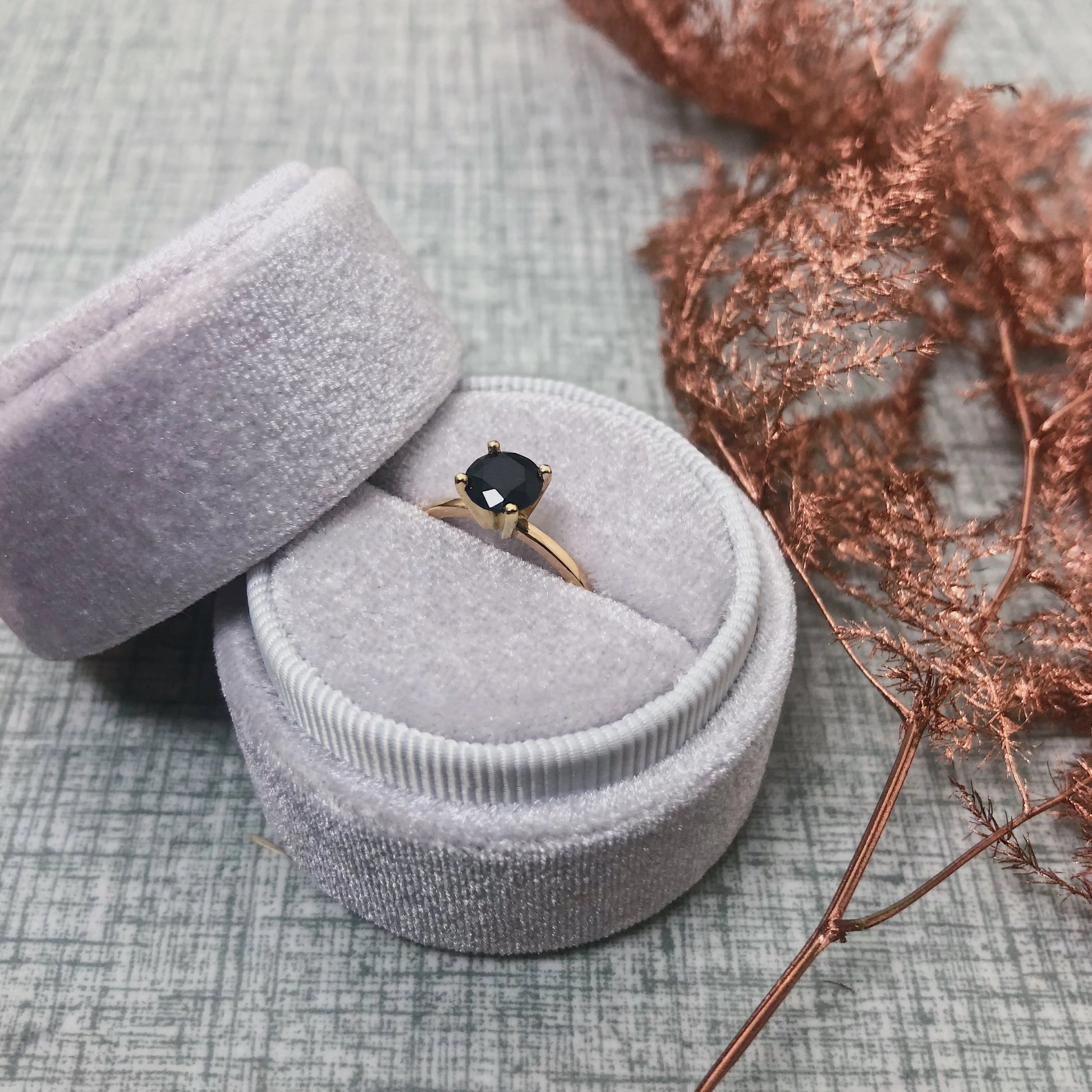 Den svarta spinellen, en etiskt sourcad skönhet från Australien. Bär den ensam eller tillsammans med Granula-ringen. Kombinationen med rött guld och svart dramatik är både tidlös och modern!